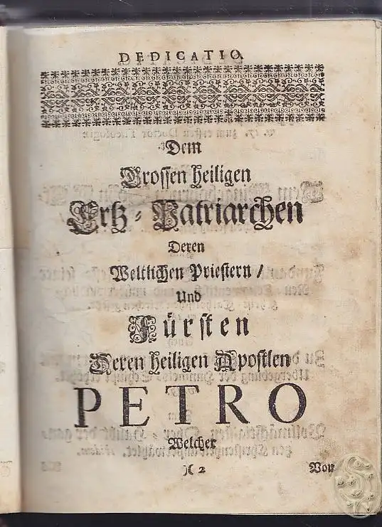 Saltzburg (Salzburg), Dratzieher/Prambsteidl 1726. 2 Tle. in 1 Bd. gr.-8°. 8 Bll., 442; 155, 25 S. (Nahmen-Register Der in disem andern Theil des heiligen Petriner-Jahrs beschribnen Priestern u. Register deren Merckwürdigen Sachen). Pbd. d. 19. Jhdts. Kanten berieb. Oberes Drittel d. Titelblattes fehlt u. ist ergänzt. 2. Bll. d. Registers nur fragmentarisch erhalten.