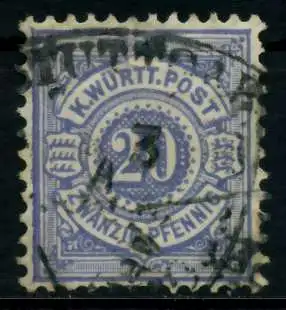20 Pf Wert aus der Ausgabe Ziffern im Kries von Württemberg, gez. K 11 1/2:11