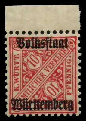 10 Pf Wert aus der Dienstmarkenausgabe von 1919 mit zweizeiligem Aufdruck "Volksstaat Württemberg"