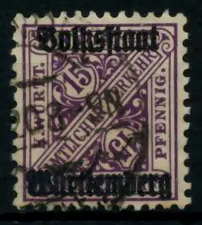 15 Pf Wert aus der Dienstmarkenausgabe von 1919 mit zweizeiligem Aufdruck "Volksstaat Württemberg"
