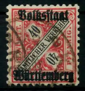 40 Pf Wert aus der Dienstmarkenausgabe von 1919 mit zweizeiligem Aufdruck "Volksstaat Württemberg"
