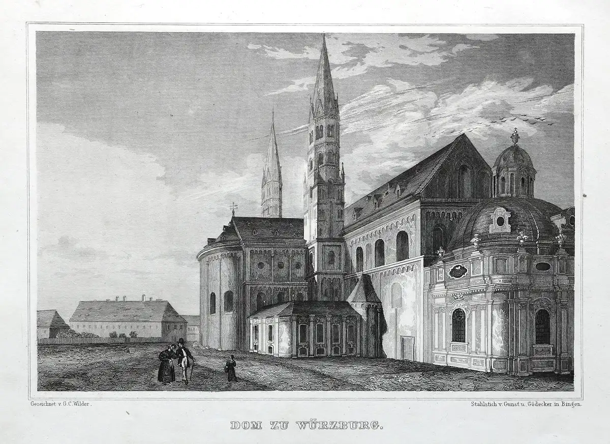 WÜRZBURG. Der Dom. Originaler Stahlstich um 1850