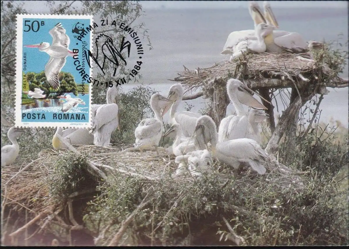 WWF 1984 Rumänien Krauskopfpelikan Maximumkarte MK/MC
