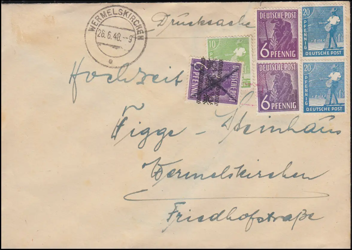 Währungsreform: überklebte Zehnfachfrankatur mit 37I, WERMESLKIRCHEN 26.6.1948