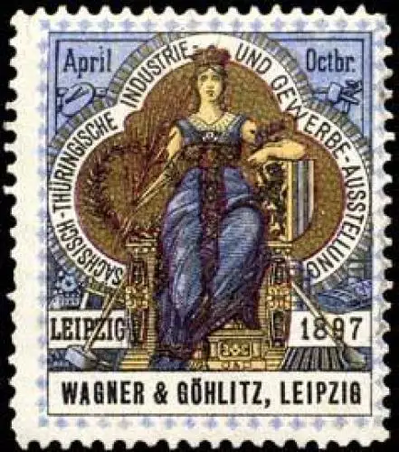 Sächsisch-Thüringische Industrie und Gewerbe-Ausstellung, Leipzig, Garne, Posamenten, Strümpfe, Größe/Zustand: 4x3 , guter Zustand, Original alte Reklamemarke die seinerzeit für die Werbung benutzt wurde