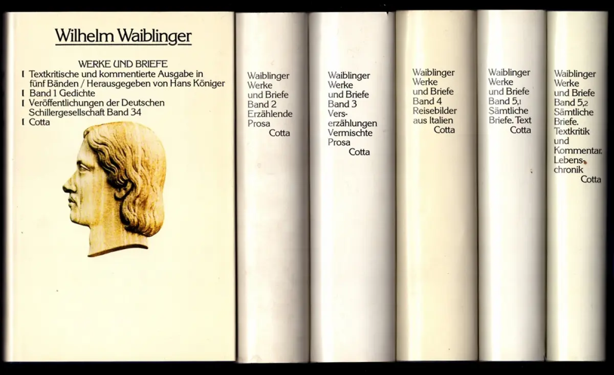 Waiblinger, Wilhelm: Werke und Briefe. Textkritische und kommentierte Ausgabe in 5 Bänden. Hrsg. von Hans Königer. 5 in 6 Bdn.(= komplett).