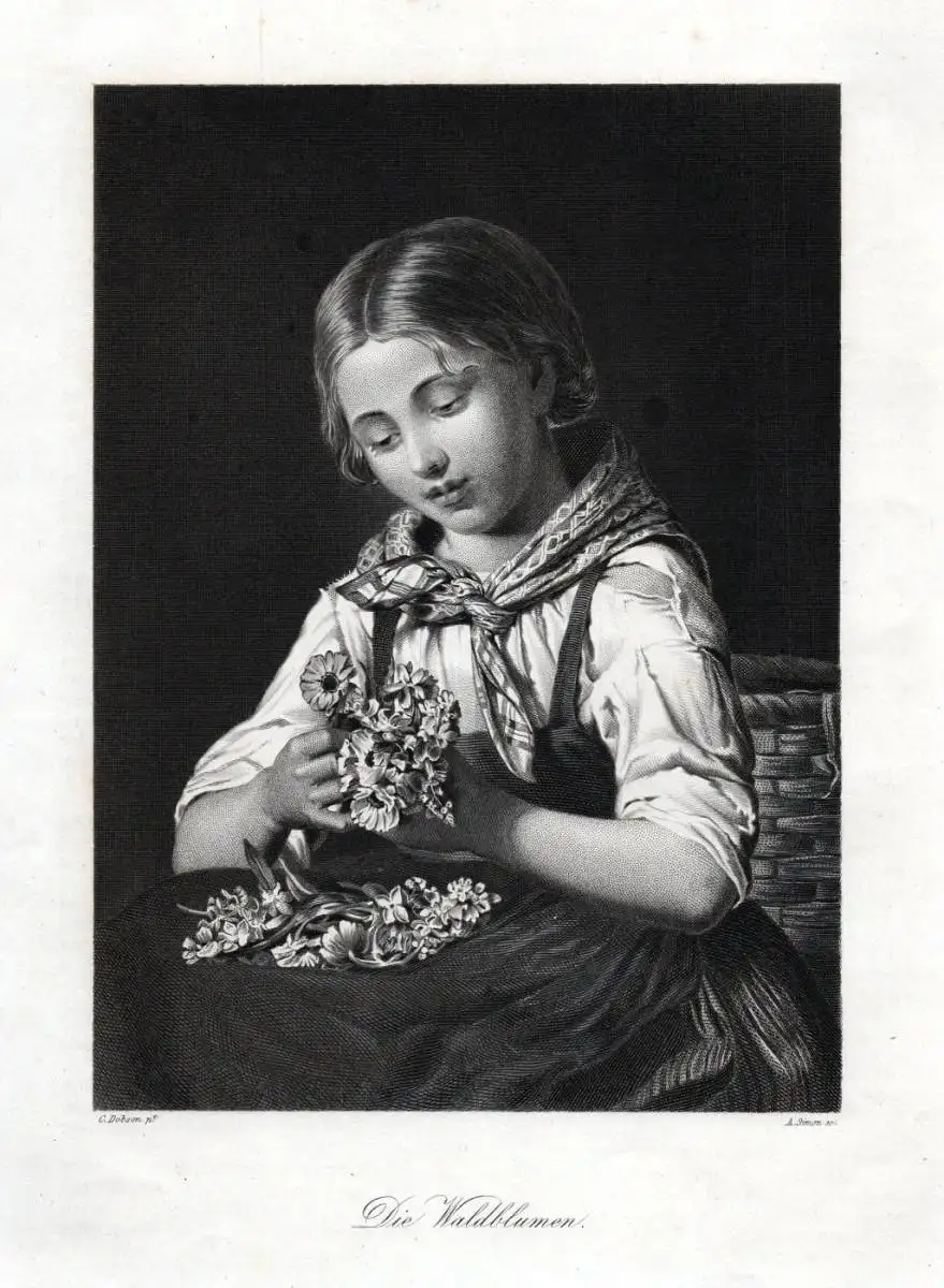 Waldblumen. Originaler Stahlstich; von Simon um 1850