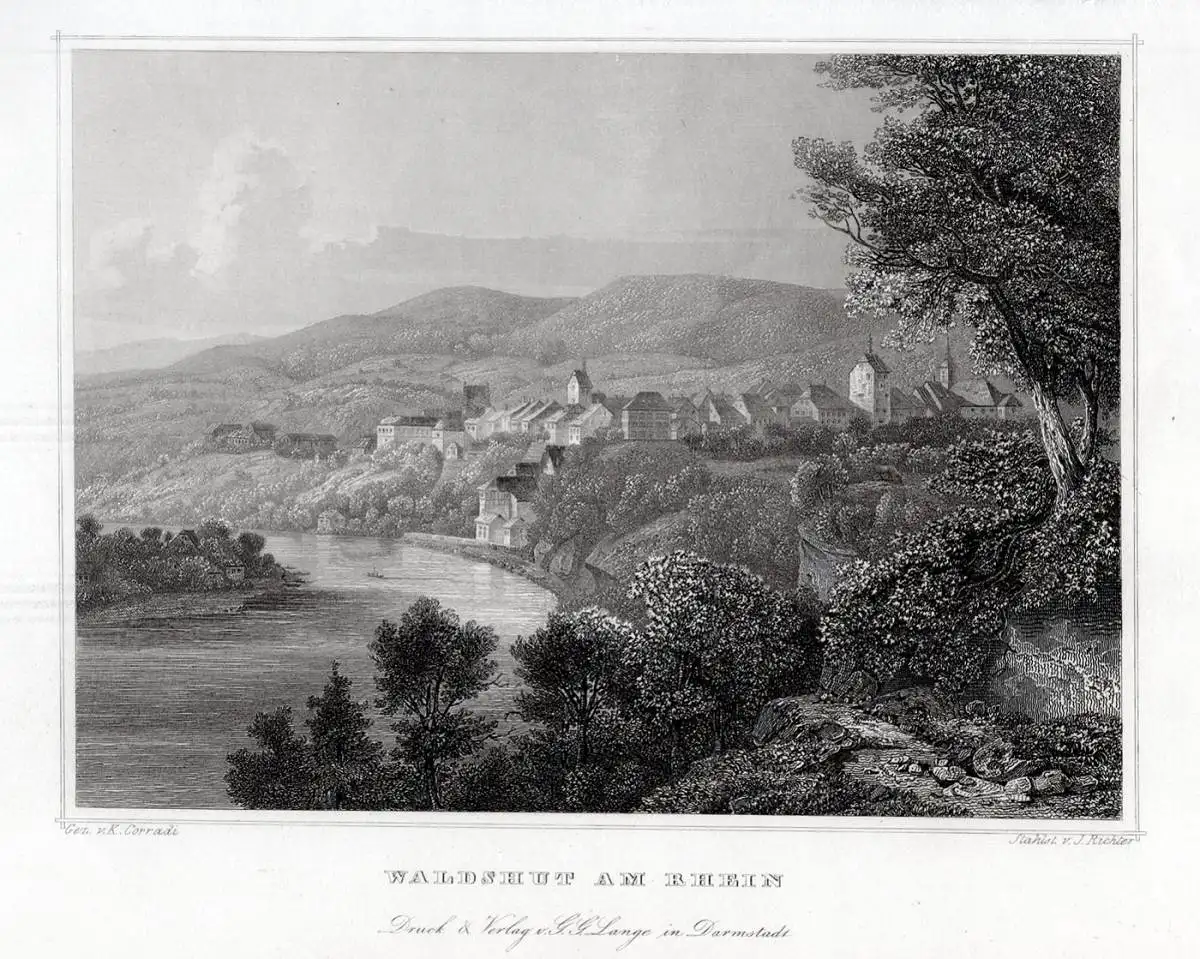Waldshut am Rhein. . Originaler Stahlstich um 1850