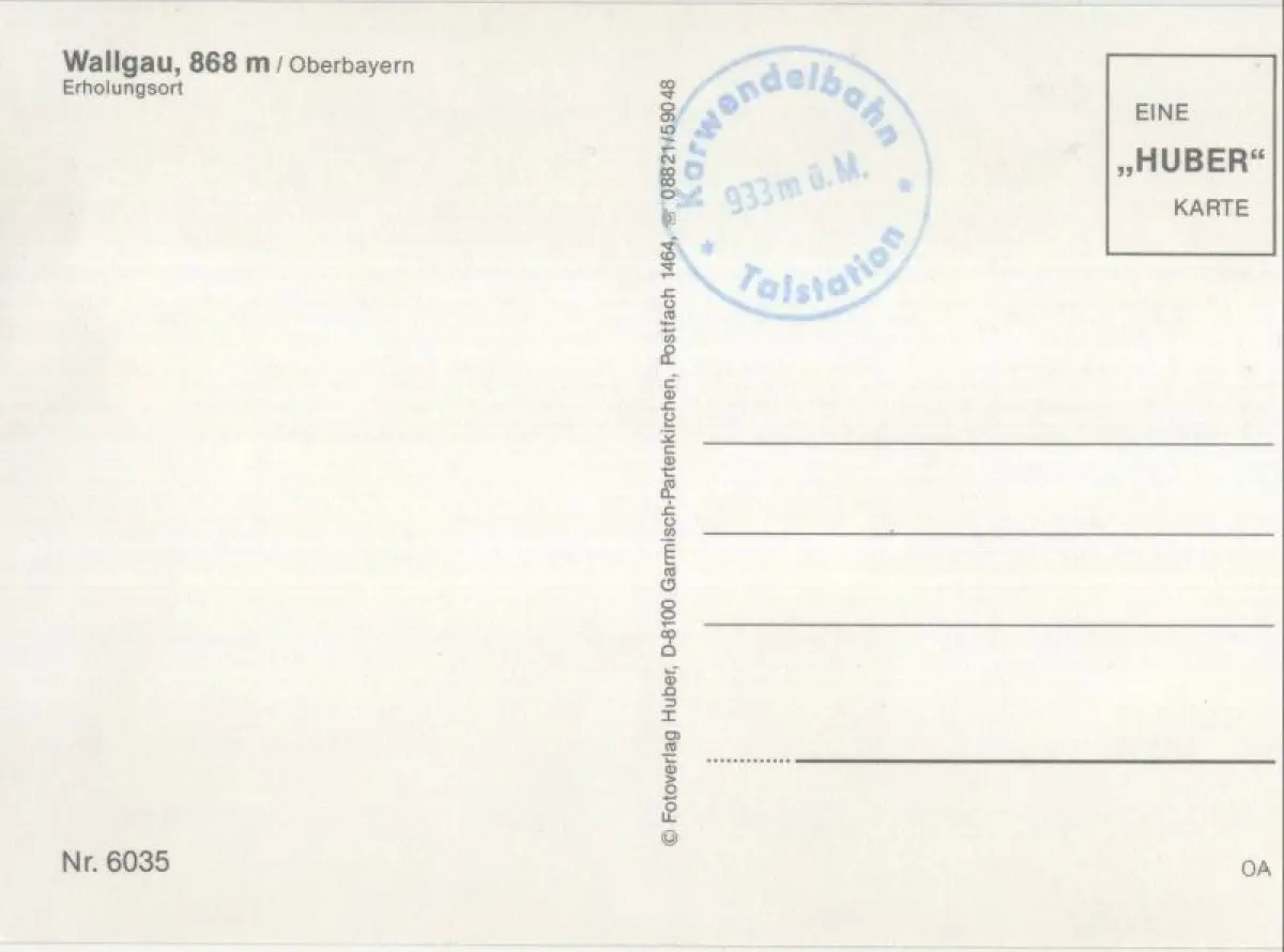 Postleitzahl:82499 (neu) / W 8101 (alt)