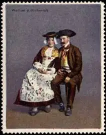 Trachten - Serie Schweiz, Größe/Zustand: 6x5 , guter Zustand, Original alte Reklamemarke die seinerzeit für die Werbung benutzt wurde