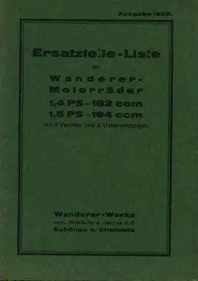 Wanderer 1,4 PS 182ccm und 1,5PS 194ccm Ersatzteilliste 3.1929
