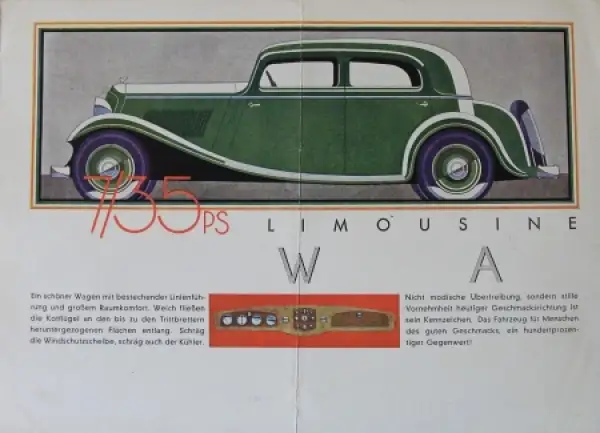 Wanderer 7/35 PS Modellprogramm 1933 Reuters Zeichnungen Automobilprospekt (7422)