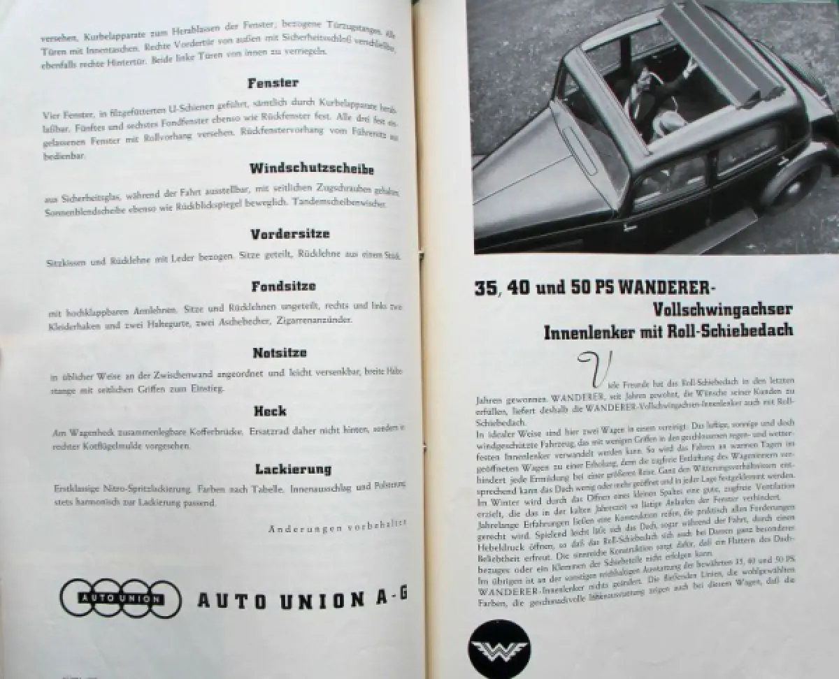 Wanderer Modellprogramm 1935 Automobil-Pressemappe (10061)
