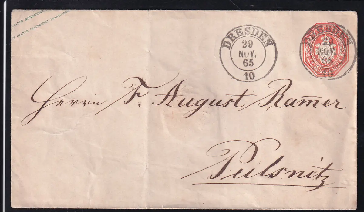 Wappen ½ Ngr. mit K2 DRESDEN 29 NOV 65 nach Sebnitz