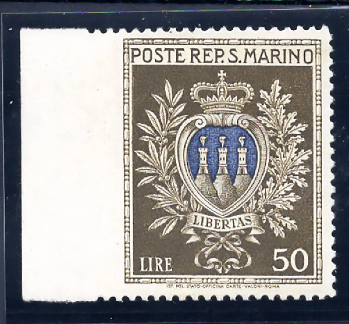 * MH - Wappen Lire 50 Nr. 295e schönes ungezähntes Exemplar links b. von f. komplett - leichte Linguella-Spuren - Ungewöhnlich - Kat. 300 (900/19)