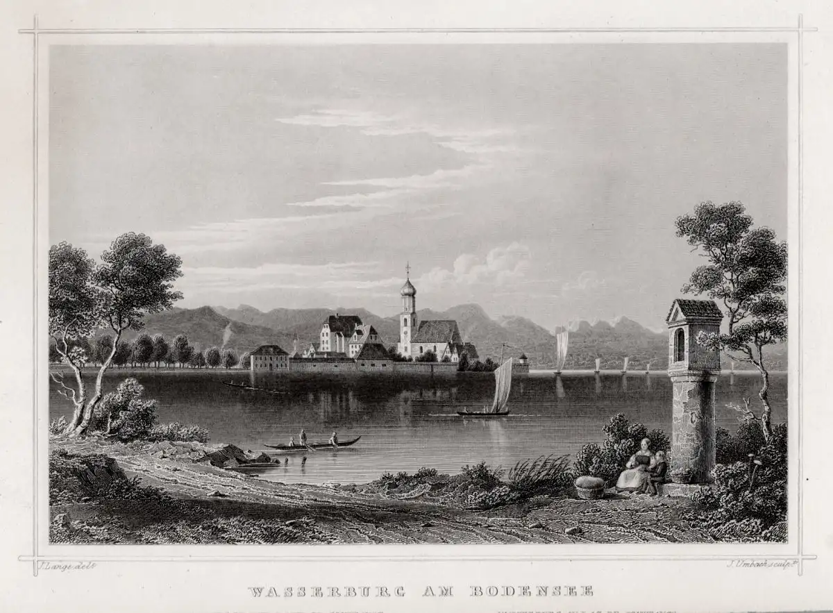 Wasserburg am Bodensee. Original Stahlstich Umbach um 1850