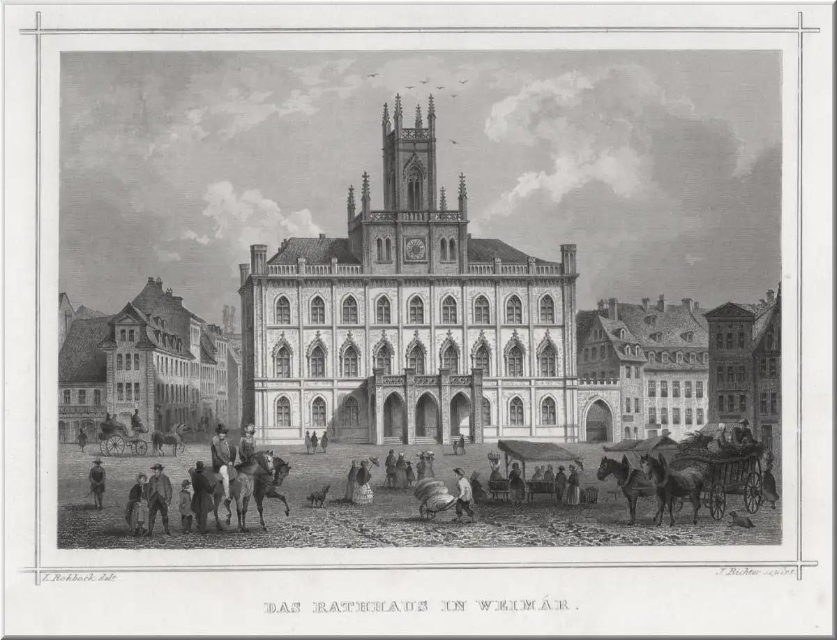 Weimar. Das Rathaus Originaler Stahlstich, Richter um 1840