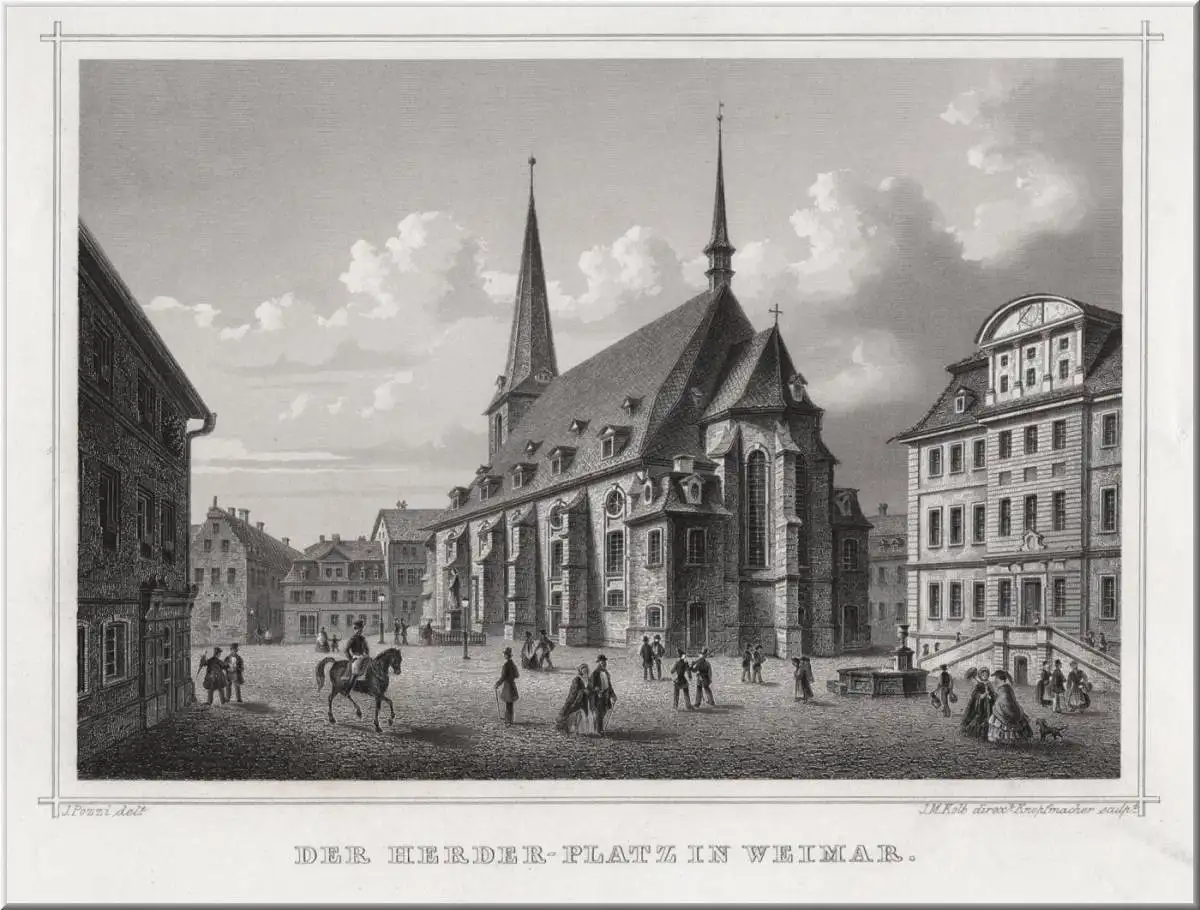 Weimar. Der Herder-Platz Originaler Stahlstich Kolb um 1850