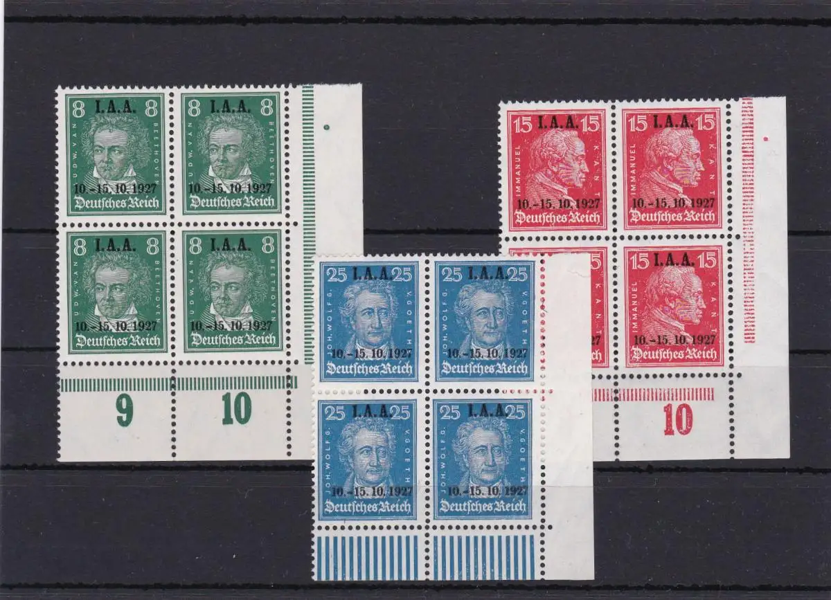 Weimarer Rep. MiNr. 407/409, Ecke Viererblöcke, postfrisch