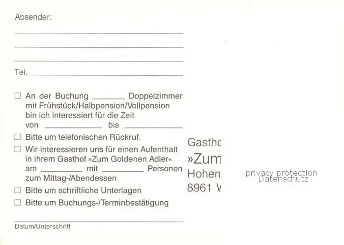 Weitnau Gasthof zum Goldenen Anker Tuerschild Landschaftspanorama Weitnau postalisch nicht gelaufen nach 1965 Erhaltung siehe scans [FriedD77] Frierer