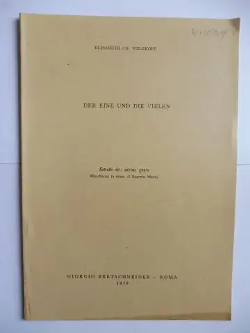 Welskopf, Elisabeth Ch: Aus Miscellanea in onore di Eugenio Manni: DER EINE UND DIE VIELEN.