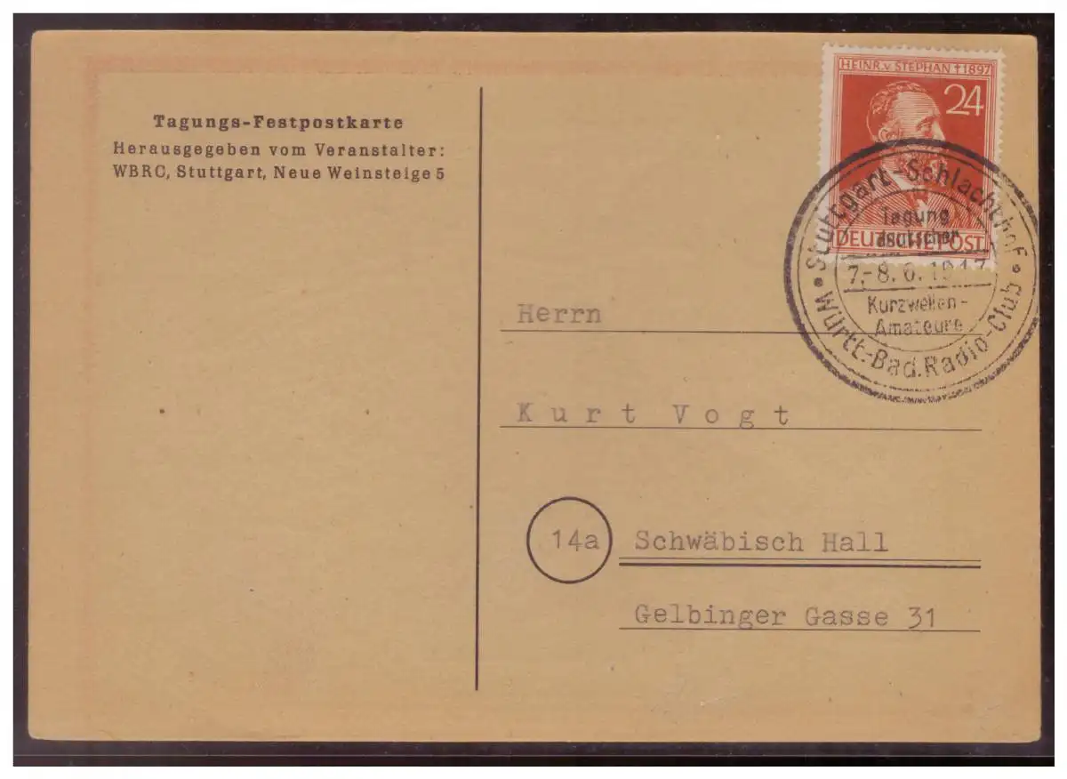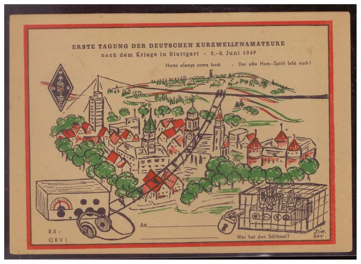[Werbepostkarte] Motiv (008297) AK Erste Tagung der Deutschen Kurzwellenamateure, nach dem Kriege in Stuttgart, 6,1947, gelaufen mit SST.