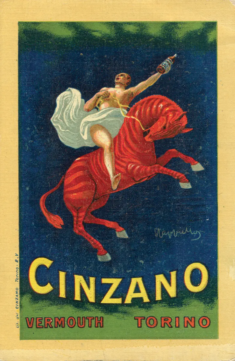 Werbung - Farb-Leinwandkarton Werbung Cinzano Vermout Postkarte - Werbung - Farb-Leinwandkarton Werbung Cinzano Vermouth Turin Zeichner L. Cappiello - in sehr gutem Erhaltungszustand - Selten Cod. 40/15