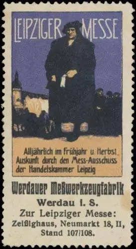 zur Leipziger Messe Zeißighaus, Neumarkt 18, Leipzig, Größe/Zustand: 6x3 , leicht fleckig, Original alte Reklamemarke die seinerzeit für die Werbung benutzt wurde
