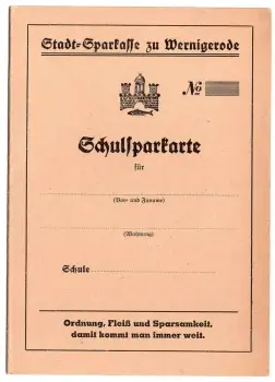 Wernigerode Schulsparkarte der Sparkasse unbenutzt um 1940