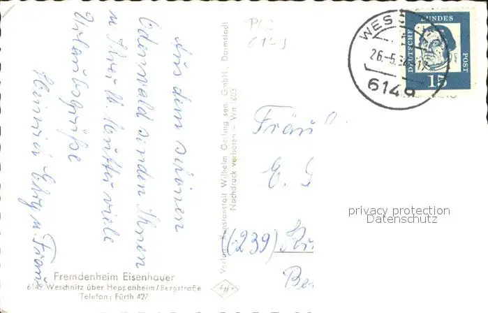 Weschnitz Fuerth postalisch gelaufen 1962 Erhaltung siehe scans Alte Ansichtskarte Postkarte BertBack