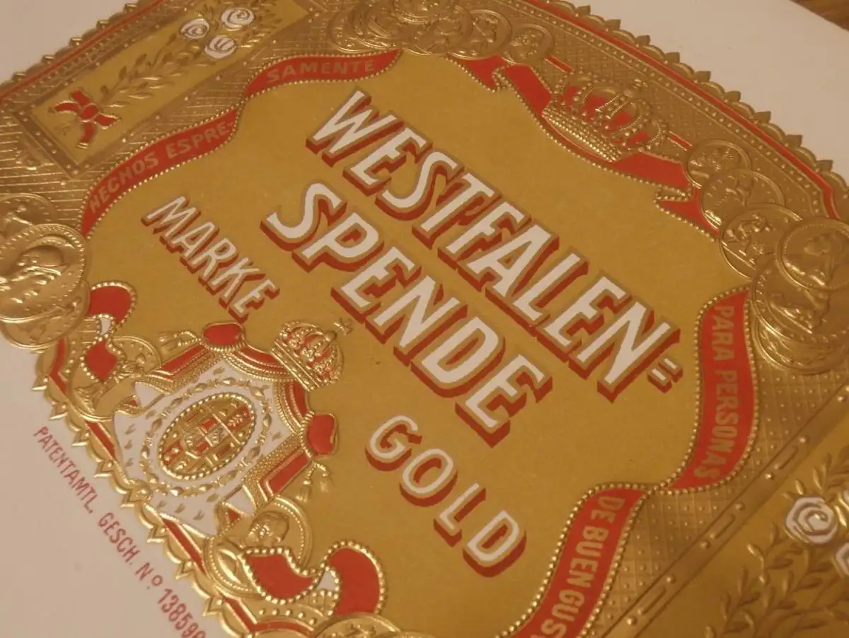 Westfalen-Spende - Marke Gold , ca. 1930 , Tabak , Zigarren , Cigarren , Reklame / Werbung , altes Dokument !!!AZ9-Z