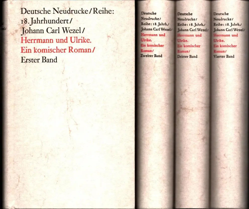 Wezel, Johann Carl: Herrmann und Ulrike. Ein komischer Roman. Faksimiledruck nach d. Ausg. von 1780. Mit e. Nachwort von Eva D. Becker. 4 Bde. (= komplett).