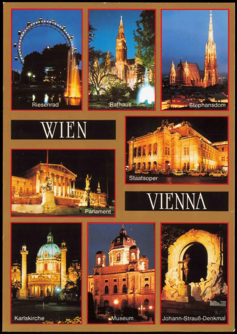 Name: Mehrbild-AK u.a. Rathaus Museum Staatsoper Parlament Riesenrad