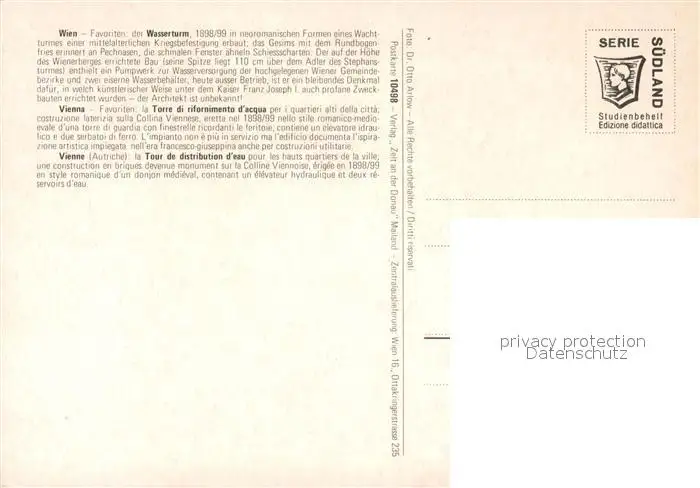 Wien Wasserturm Wien postalisch nicht gelaufen nach 1965 Erhaltung siehe scans [WerneD78] WernPID7