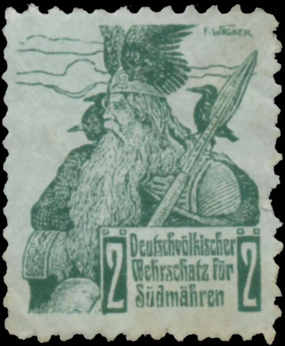 Deutschvölkischer Wehrschatz Südmähren, Spendenmarke, Wehrschatzmarke, Größe/Zustand: 3x2 , guter Zustand, Original alte Reklamemarke die seinerzeit für die Werbung benutzt wurde