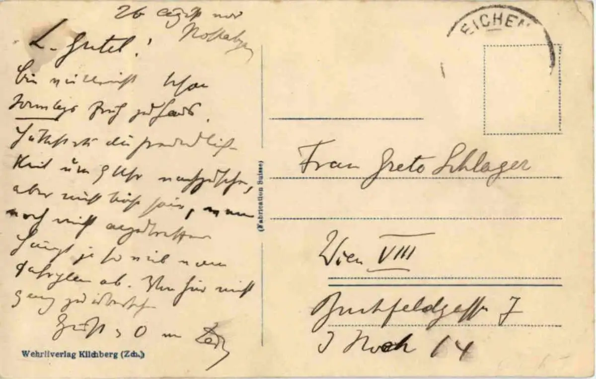 Danke. Alles Bestens. Können Sie mir allenfalls mitteilen, aus welchem Jahr die Postkarte stammt? Besten Dank.