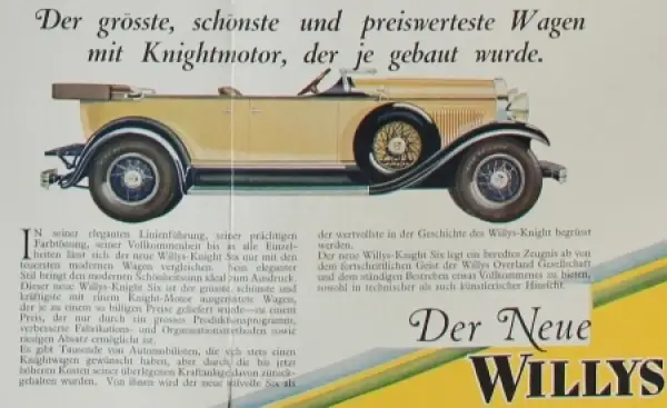Willys-Knight Six Modellprogramm 1928 Automobilprospekt (7365)