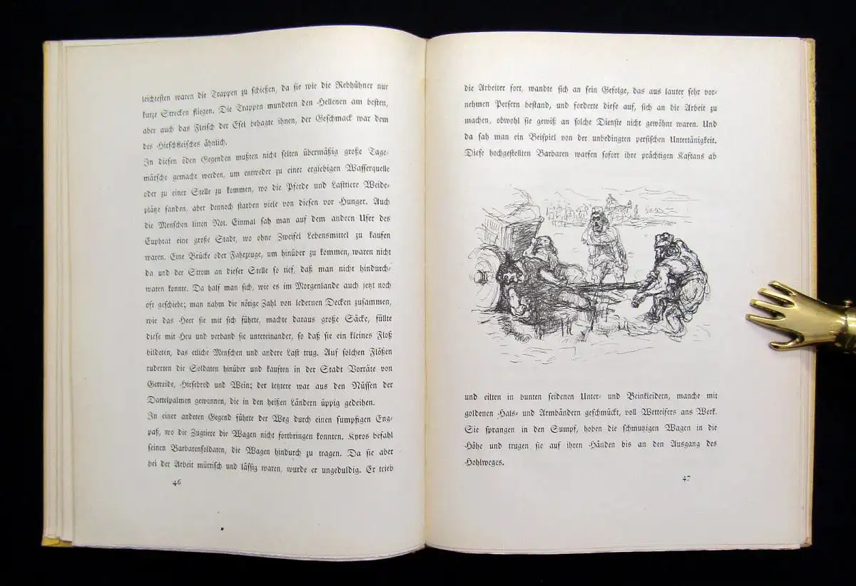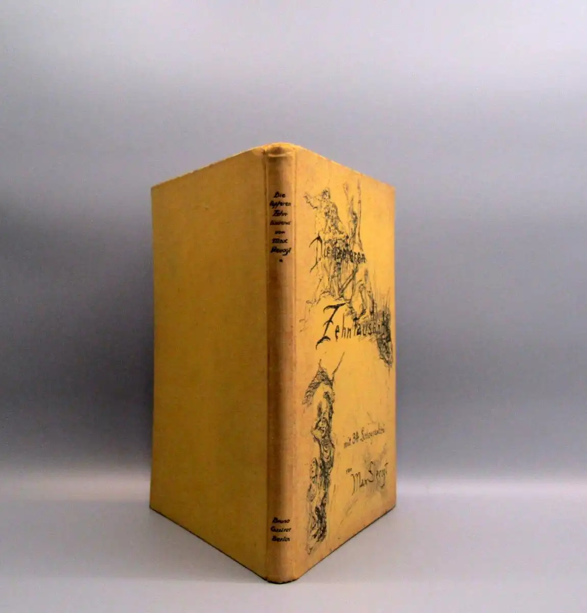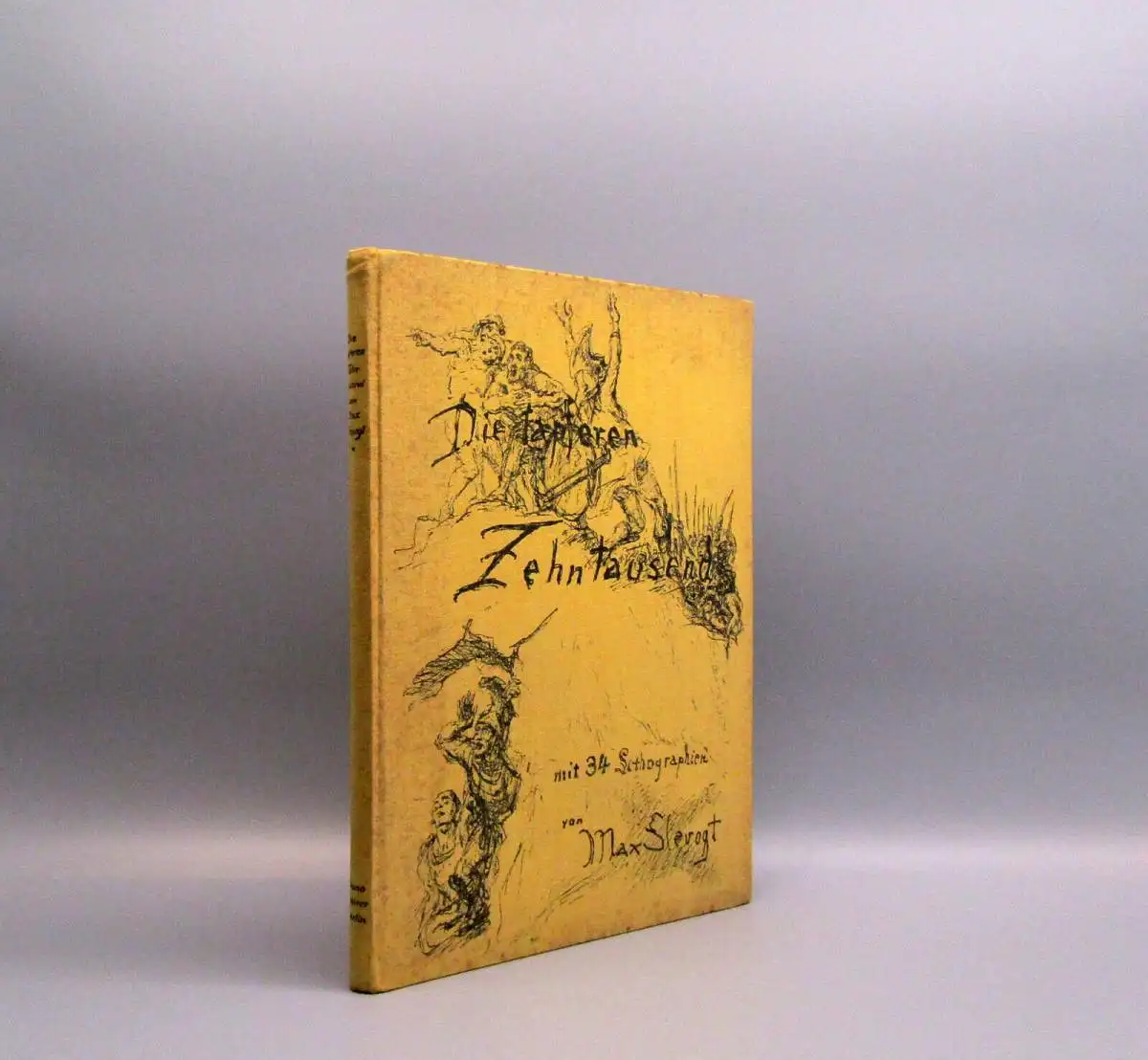 Einband etwas berieben und bestoßen, angeschmutzt und braunfleckig. Papier etwas gebräunt, stellenweise braun- und fingerfleckig, unterer Buchschnitt teils wellig.