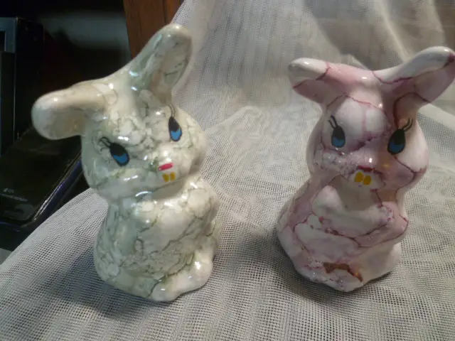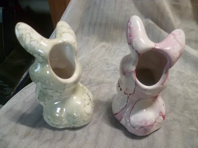 2 Hasen bunt bemalt als Vasen zu Deko Zwecke zu nutzen