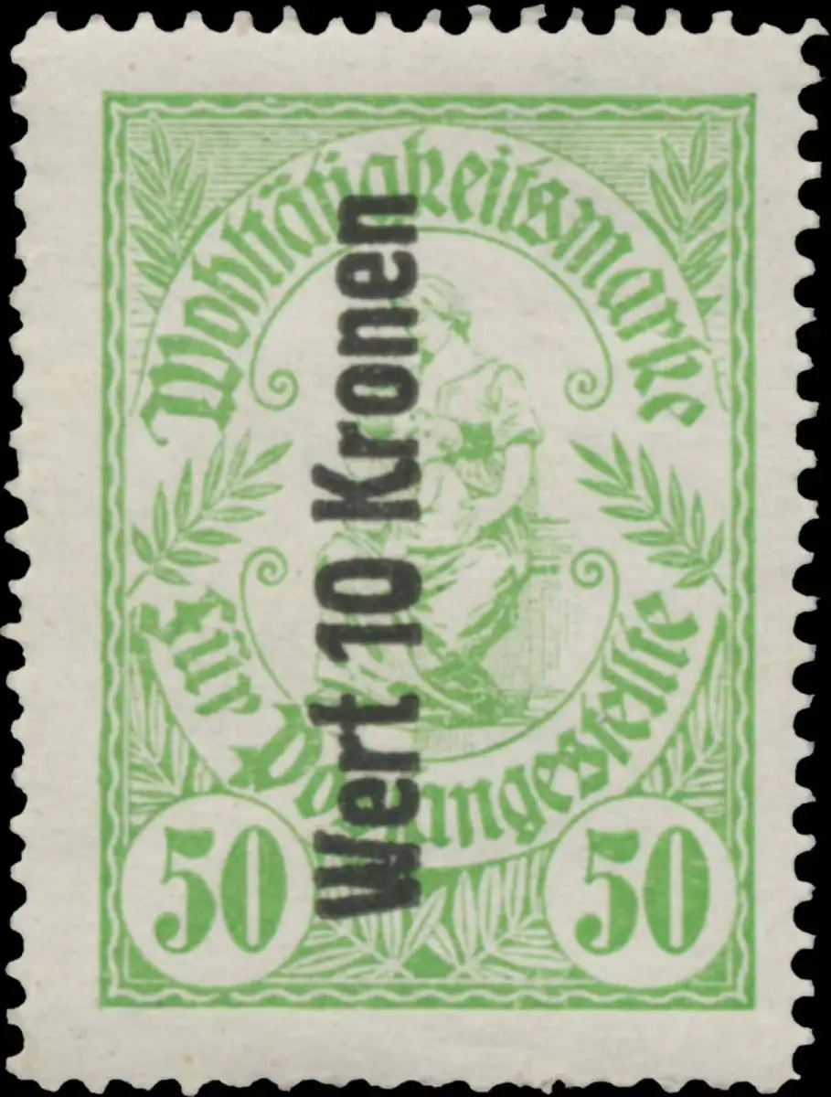 50, hellgrün, Wert 10 Kronen, Post, Österreich, Spendenmarke, Größe/Zustand: 4x3 , guter Zustand, Original alte Reklamemarke die seinerzeit für die Werbung benutzt wurde