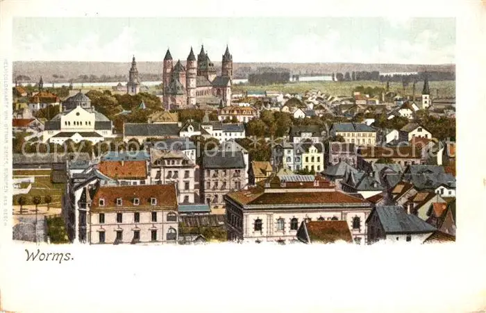 Worms_Rhein Stadtpanorama mit Dom Worms Rhein postalisch nicht gelaufen bis 1920 Erhaltung siehe scans [FriedD77] Frierer