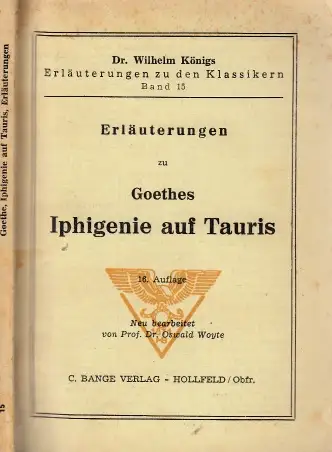 Erläuterungen zu Goethes Iphigenie auf Tauris; Dr. Wilhelm Königs Erläuterungen zu den Klassikern; Band 15; Oswald Woyte; Lehrbuch; Schulbuch