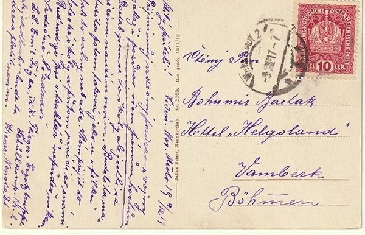 Bemerkungen: Gelaufen Wiener Neustadt - Vamberk, 1917. Ein Militärflugzeug fliegt über Wiener Neustadt. Im Text auf der Rückseite der Ansichtkarte findet sich ein Hinweis auf die Flieger-Ersatztruppe.