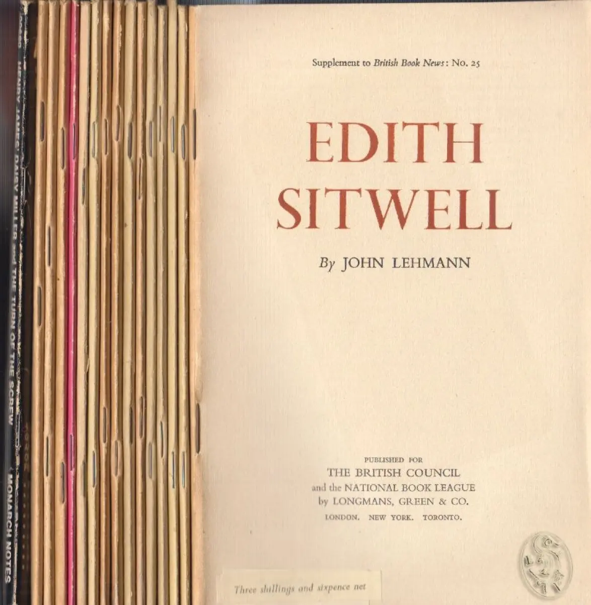 Bemerkungen: Enthält: Edith Sitwell by John Lehmann; Virginia Woolf by Bernard Blackstone; George Orwell by Tom Hopkinson; R. G. Collingwood by E. W. F. Tomlin; Samuel Johnson by S. C. Roberts; Gerhard Manley Hopkins by Geoffrey Grigson; Christopher Marlowe by Philip Henderson; John Donne yb Frank Kermode; Lewis Carrol by Derek Hudson; W. H. Auden by Richard Hoggart;Thomas De Quincey by Hugh Sykes Davies; Compton- Burnett by R. Glynn Grylls. - Dazu: Henry James by Michael Swan; I. Compton-Burnett by Pamela Hansford Johnson; Tobias Smollett by Laurence Brander; Henry James` Daisy Miller and The Turn of the Screw. - Insges. 16 Hefte.
