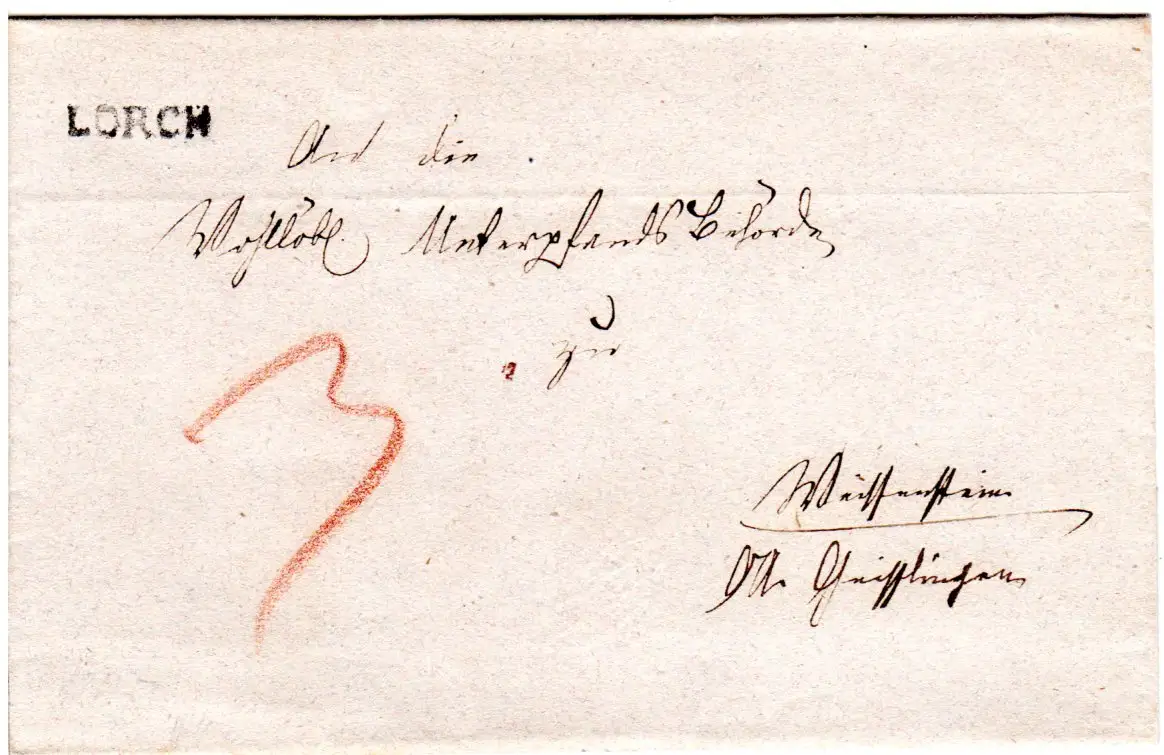 Württemberg, L1 LORCH klar auf Porto Brief n. Weissenstein OA Geisslingen