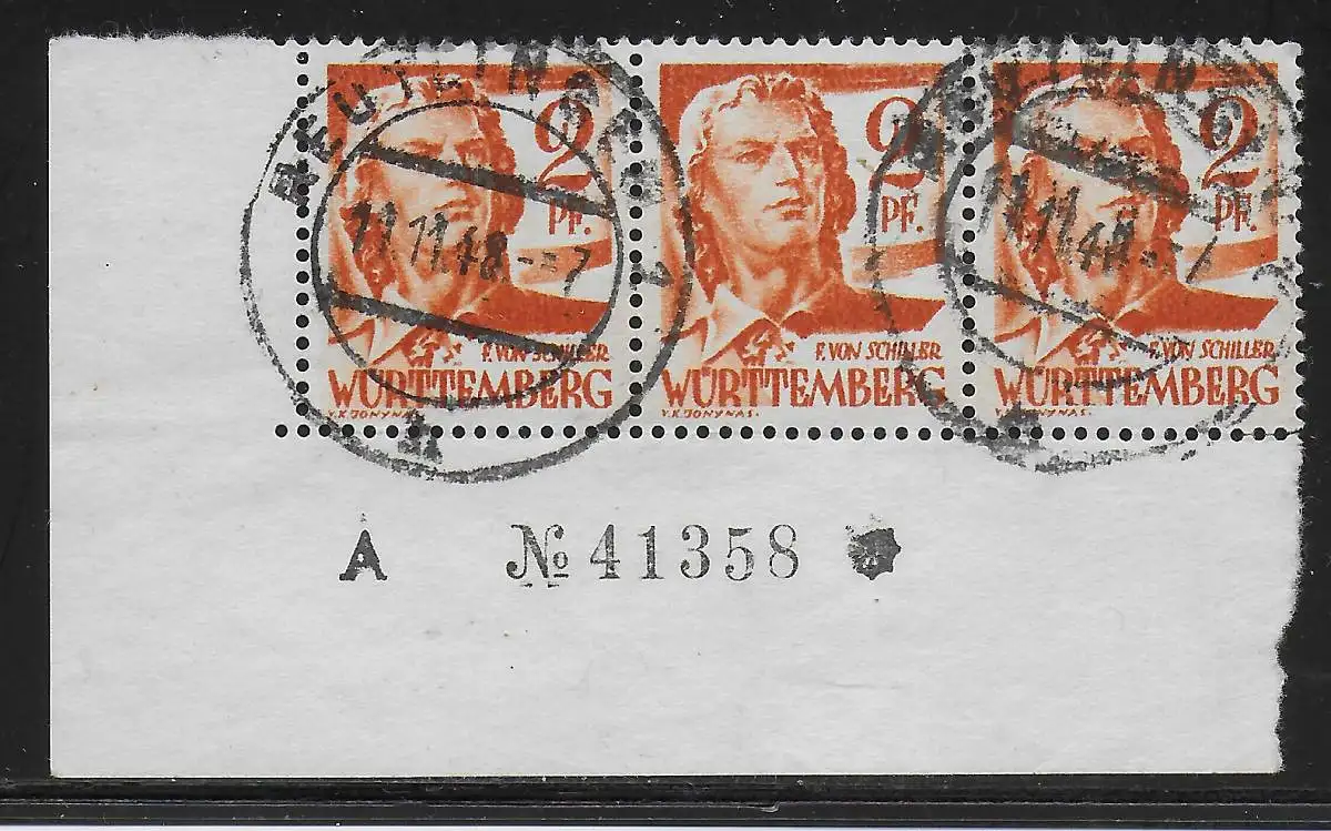 Württemberg: MiNr. 14, gestempelt, Eckrand mit Bogennummer