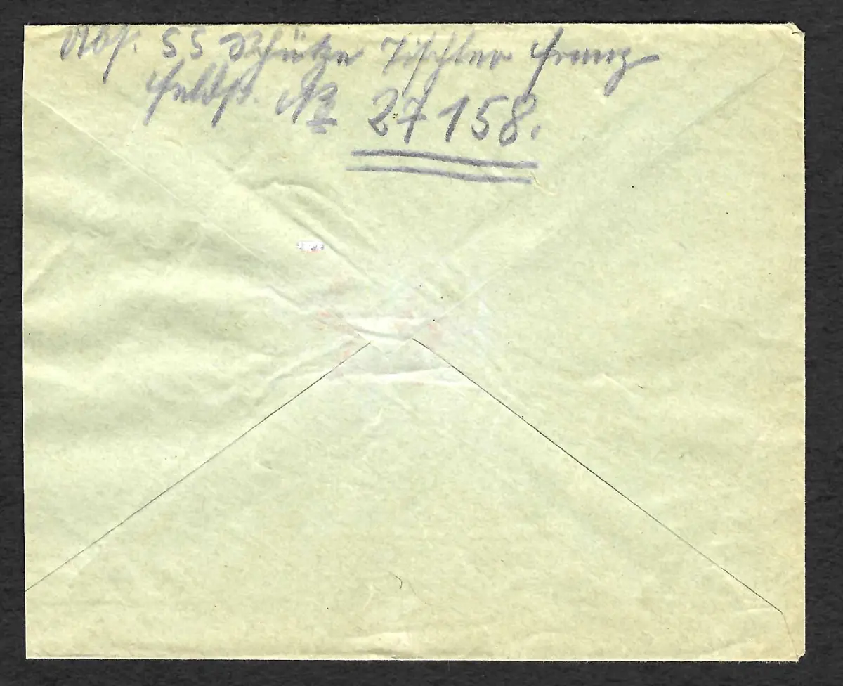 DRP: Deutsche Reichspost: Anfang 1943 wurden die bewaffneten Postler (Postschutz) in die XX überführt und für Transportzwecke - zur Front und zurück - mit ihren großen Postbussen eingesetzt. Es ist sehr wenig über den Einsatz dieser Männer bekannt. Der Brief ging nach Wien.