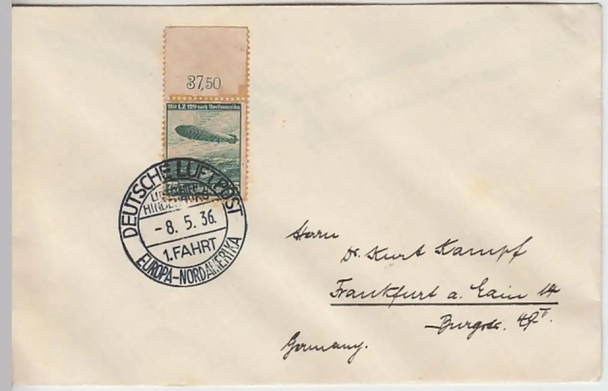 (Z6) Zeppelinpost 1. Nordamerikafahrt Bordpost 1936, Sondermarke Randst.