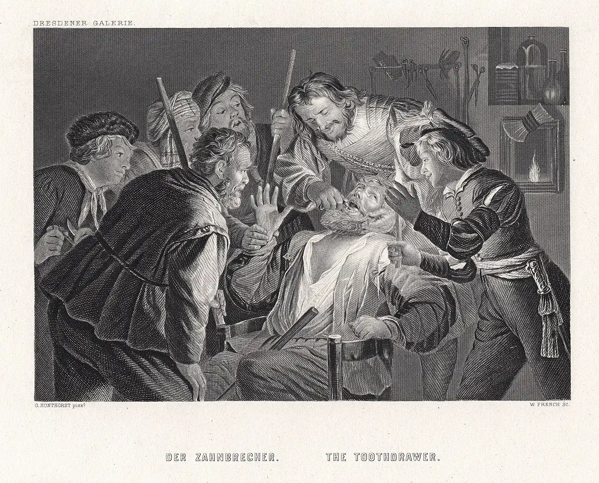 Zahnarzt, Dentist. Echter Stahlstich n. Dow. Erstauflage um 1850
