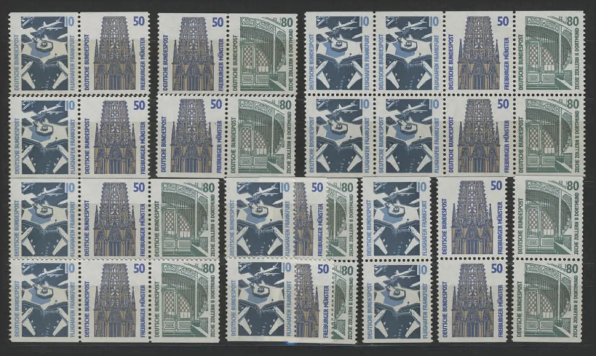Komplettes Set "Sehenswürdigkeiten" mit allen Zusammendrucken mit der gelblichen Gummierung u nach MICHEL. Mit den C/D-Paaren, Einzelmarken und mit den Heftchenblättern.